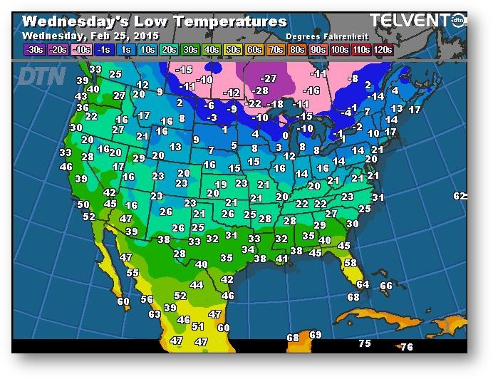 Prévisions des températures les plus basses (degrés Farenheit)