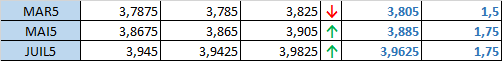 - Prix calculé en fonction du rapport 201 du CME hier :