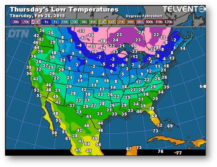 Prévisions des températures les plus basses (degrés Farenheit)