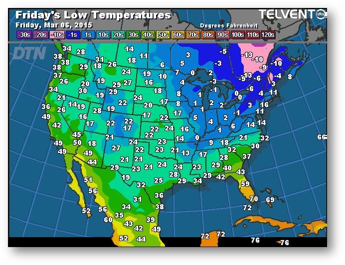 Prévisions des températures les plus basses (degrés Farenheit)