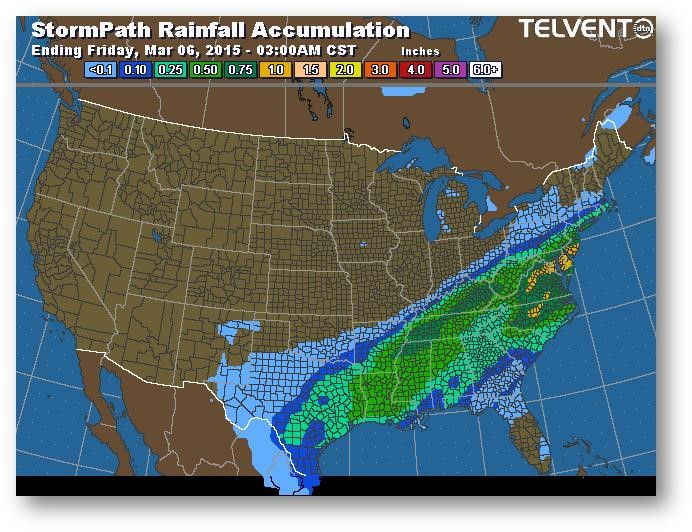 Trajectoire de tempête – Accumulation de précipitations (pouces)