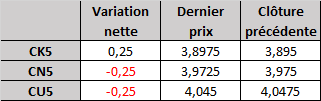 - Prix calculé en fonction du rapport 201 du CME hier :