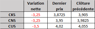 - Prix calculé en fonction du rapport 201 du CME hier :