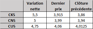 - Prix calculé en fonction du rapport 201 du CME hier :