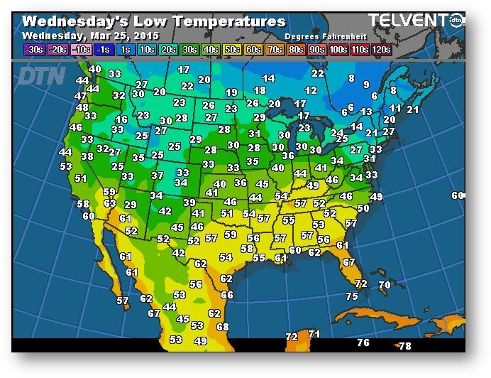 Prévisions des températures les plus basses (degrés Farenheit)
