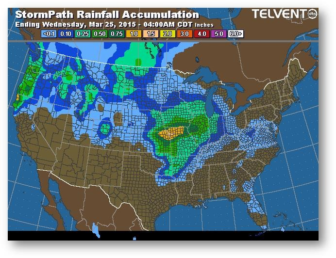 Hier, le redressement des prix suite à la couverture des positions courtes s'est poursuivi hier, mais a ralenti au cours de la nuit et on a vu une baisse de quelques cents. Les exportations ont été de 39,1 millions de boisseaux, ce qui correspond à la moyenne hebdomadaire nécessaire au cours du trimestre (mars-mai). Les marchés au comptant ont profité du redressement hier puisque les agriculteurs ont relativement été de bons vendeurs; ils demeurent attirés par des prix autour de 4$. Les écarts sont toujours extrêmement grands pour cette période de l'année. Seulement quelques états du sud ont publié hier leurs données relatives à l'évolution des semis. La Louisiane avait un résultat de 1% comparativement à 17% il y a un an et à une moyenne de 48%. L'Arizona n'a rien semé alors que 8% était fait l'année dernière et que la moyenne est de 11%. Au Texas, l'ensemencement est avancé à 14%, ce qui est inférieur au résultat il y a un an de 19% et à la moyenne de 28%. On ne s'attend à aucun mouvement majeur d'ici la publication du prochain rapport à moins que le dollar américain ou le pétrole bouge considérablement.