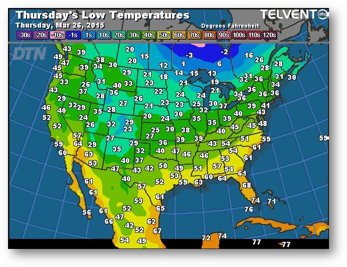 Prévisions des températures les plus basses (degrés Farenheit)