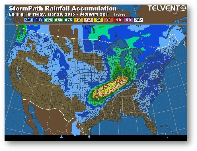 Trajectoire de tempête – Accumulation de précipitations (pouces)
