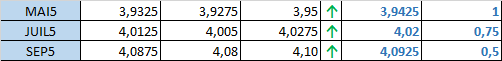 - Prix calculé en fonction du rapport 201 du CME hier :