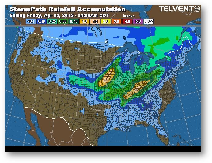 Trajectoire de tempête – Accumulation de précipitations (pouces)