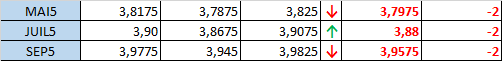 - Prix calculé en fonction du rapport 201 du CME hier :
