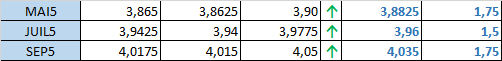 - Prix calculé en fonction du rapport 201 du CME hier :