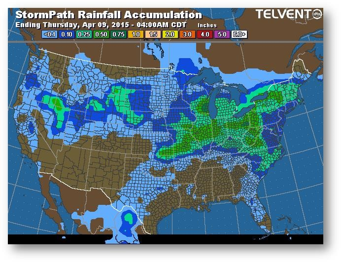 Les nouvelles fondamentales à court terme vont dans les deux directions, mais les stocks élevés à court terme, les inquiétudes relatives à la demande d'exportation et la faible demande aux États-Unis envoient un signal baissier à court terme. La nouvelle de mise aux enchères de maïs en Chine ce jeudi et la force du dollar américain ont contribué à faire reculer les prix du maïs à un nouveau creux pour la semaine. La faiblesse des prix du soja a également pesé sur le maïs. Selon toute vraisemblance, les précipitations dans le Midwest n'inquiètent pas en ce qui a trait à l'évolution de l'ensemencement, probablement parce qu'il est encore tôt et que les États-Unis sont reconnus pour arriver à compléter les semis à l'intérieur d'un délai très serré. Les prévisions pour les cinq prochains jours ont changé; on parle maintenant de 50 à 100 mm de pluie pour le centre de l'Illinois, l'Indiana et l'Ohio, ce qui pourrait supporter les prix. Le marché semble assez convaincu que les rendements seront élevés cette année. Pour ce qui est de la mise à jour des données relatives à l'offre et à la demande demain, on s'attend à des stocks de report d'environ 1,854 milliards de boisseaux comparativement à l'évaluation de 1,777 en mars.