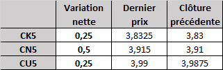 - Prix calculé en fonction du rapport 201 du CME hier :