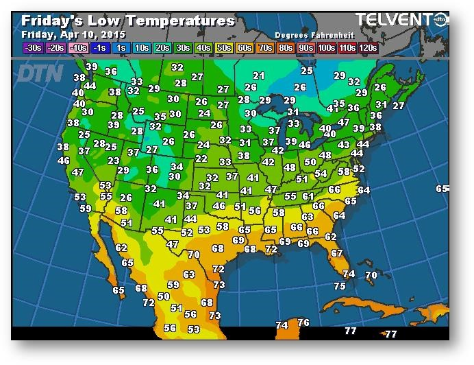 Prévisions des températures les plus basses (degrés Farenheit)