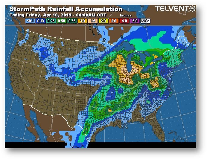 Trajectoire de tempête – Accumulation de précipitations (pouces)