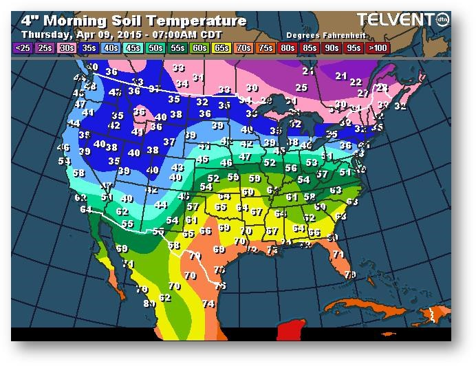 Température du sol en matinée à une profondeur de 4 pouces