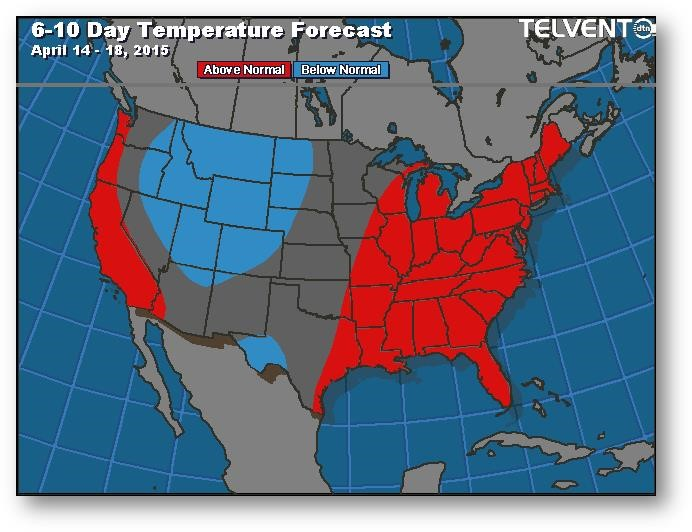 Prévisions de températures pour les 6 à 10 prochains jours
