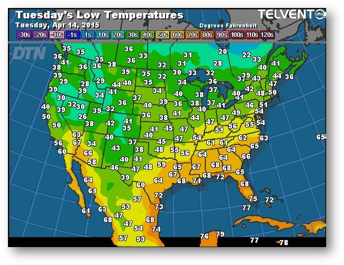 Prévisions des températures les plus basses (degrés Farenheit)