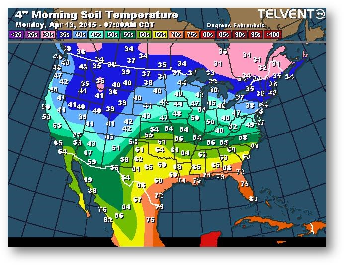 Température du sol en matinée à une profondeur de 4 pouces