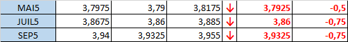 - Prix calculé en fonction du rapport 201 du CME hier :