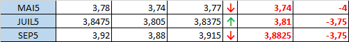 - Prix calculé en fonction du rapport 201 du CME hier :