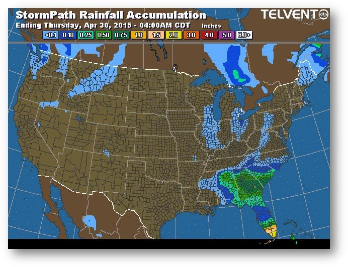 Trajectoire de tempête – Accumulation de précipitations (pouces)