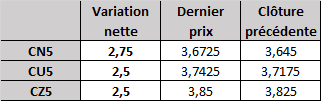 - Prix calculé en fonction du rapport 201 du CME hier :