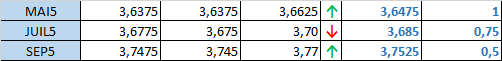 - Prix calculé en fonction du rapport 201 du CME hier :