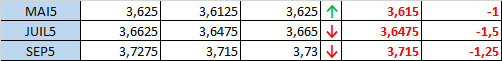 - Prix calculé en fonction du rapport 201 du CME hier :