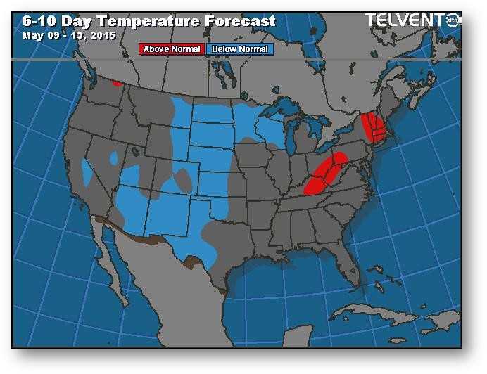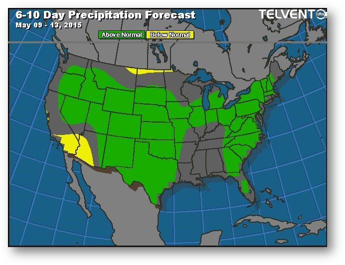 On s'attend de plus en plus à ce que l'ensemencement de maïs ait atteint 50-55% dans le rapport de cet après-midi. L'augmentation moyenne pour la dernière semaine est de 20%, ce qui se traduirait par un résultat de 40% si on l'ajoute au total de la semaine passée. Les conditions météo dans la Corn Belt ont été excellentes dans la majorité des secteurs et certains affirment même avoir déjà terminé les semis de maïs et avoir commencé le soja.