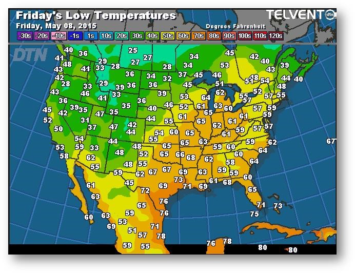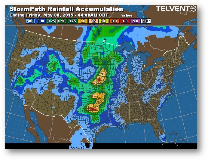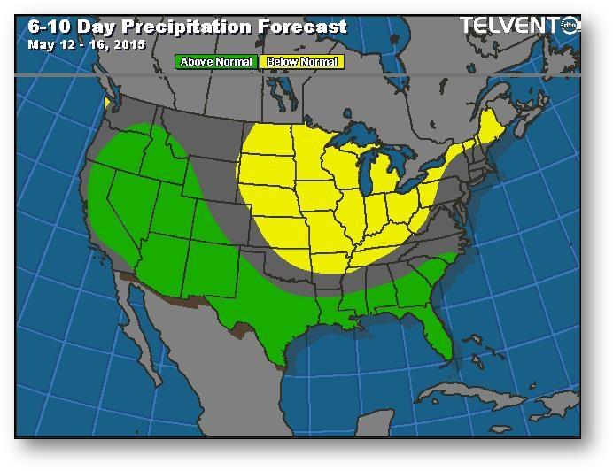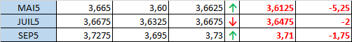 Hier, la journée a été très intéressante : autour de 10h30 (HE), un ordre d'achat de 12 000 contrats a causé une belle poussée. La progression des semis sera inégale et le total devrait dépasser les 70% d'ici lundi. La semaine prochaine sera plus fraîche et plus sèche, offrant de belles conditions pour les derniers semis de maïs et peut-être pour une avancée dans les semis de soja, ce qui pourrait empêcher le rapport maïs/soja de continuer de grimper. Les valeurs CIF restent fermes. La production d'éthanol a grandement diminué, passant de 921 000 à 887 000 barils/jour. Il est plutôt étrange de voir une telle baisse de production vu les marges.