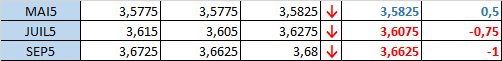 - Prix calculé en fonction du rapport 201 du CME hier :