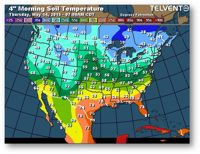 Température du sol en matinée à une profondeur de 4 pouces (degrés Farenheit)