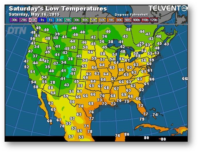 Prévisions des températures les plus basses (degrés Farenheit)