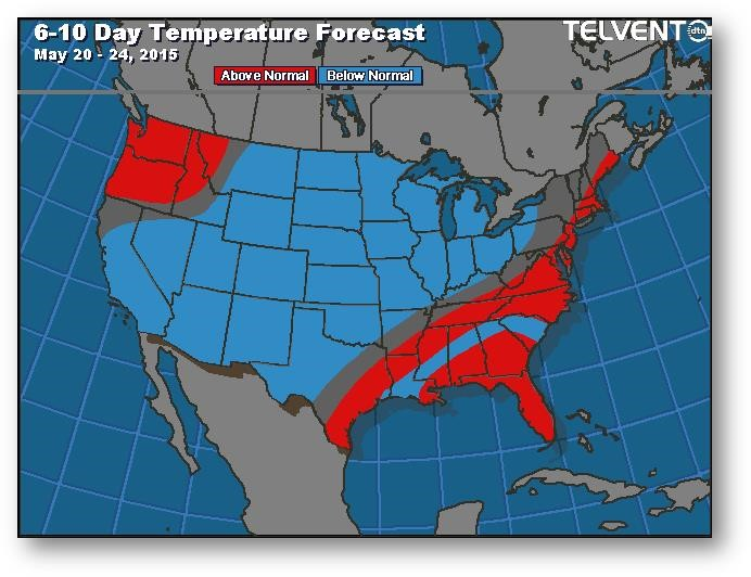 Prévisions de températures pour les 6 à 10 prochains jours