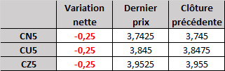 - Prix calculé en fonction du rapport 201 du CME hier :