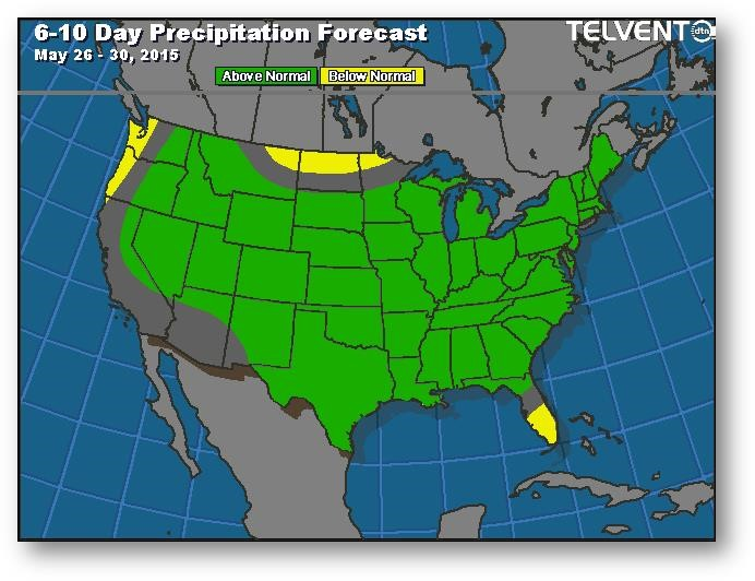 Les agriculteurs mènent le bal du côté des prix au comptant; les utilisateurs finaux ne font pas de réserves et ne fournissent aucune profondeur à long terme au marché. Si les agriculteurs ne bougent pas leurs stocks d'ici la pollinisation, le marché au comptant continuera de se renforcer. Les prévisions météo à long terme publiées ce matin auront certainement un effet sur les prix du maïs à l'approche d'une longue fin de semaine aux États-Unis (Memorial Day lundi). La production d'éthanol pour la semaine se terminant le 15 mai a grimpé à 958 000 barils/jour (912 000 la semaine précédente) puisque de plus en plus d'usines en ont fini avec l'entretien saisonnier. On s'attend à ce que la production demeure élevée en mai-juin pour répondre à la demande. Les stocks étaient passés de 853 à 858 millions de gallons. Les importations d'éthanol étaient nulles.