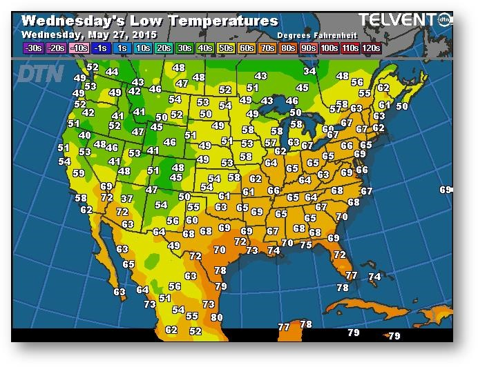 Prévisions des températures les plus basses (degrés Farenheit)