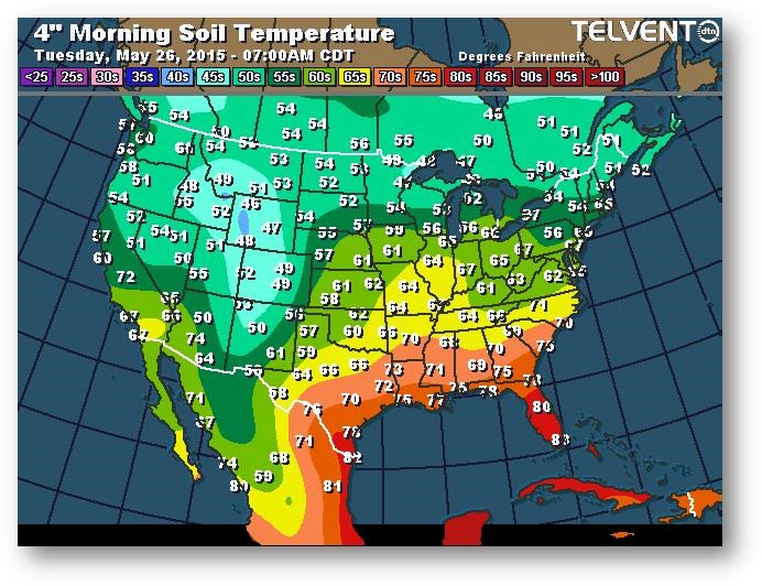 Température du sol en matinée à une profondeur de 4 pouces (degrés Farenheit)