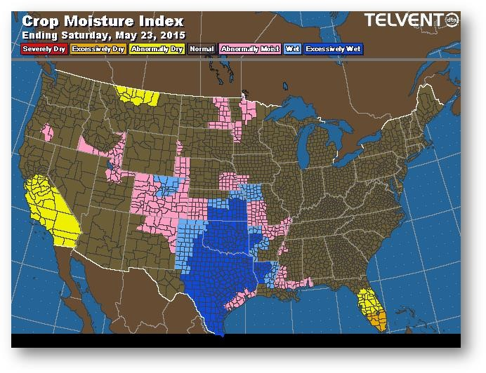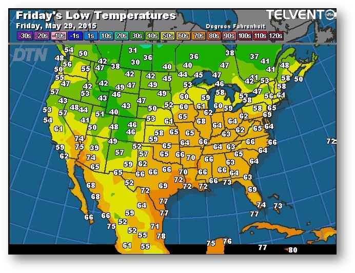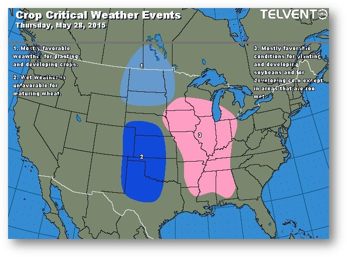 Les prix s'approchent des creux de contrat puisque les conditions météo sont favorables dans l'ensemble. Les marchés au comptant continuent d'amincir l'écart entre juillet et septembre et les valeurs se raffermissent légèrement. Les utilisateurs finaux se montrent patients; ils savent que les stocks de maïs devront sortir tôt ou tard. Les spéculateurs ont encore de la place pour augmenter leur position courte, mais on ne voit pas la nécessité de pousser le marché sous les creux de contrat avant que l'émergence soit complète. Il ne faut pas s'attendre à une importante prise de profits à la fin du mois; aucune menace météo à l'horizon.