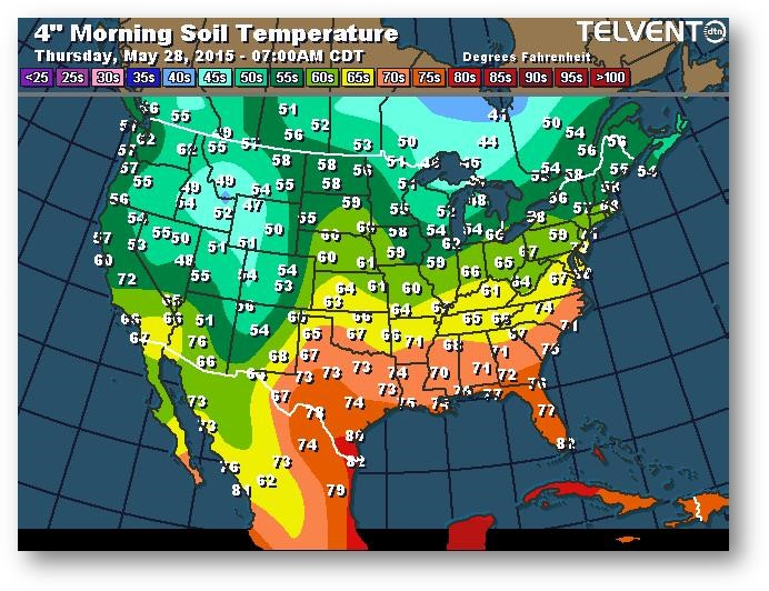 Température du sol en matinée à une profondeur de 4 pouces (degrés Farenheit)