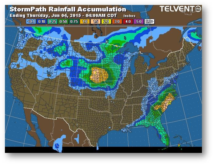 Les marchés au comptant ont vu une amélioration du mouvement à la suite du redressement des prix puisque certains agriculteurs se montrent enfin prêts à se défaire de leur ancienne récolte. Les conditions météo n'inquiètent plus aux États-Unis; il y a possibilité de perte d'une partie de la superficie au Kansas et au Missouri, mais ce n'est pas inquiétant puisque l'évaluation des cultures est de 74% bon/excellent. Le prix des crédits d'éthanol (RIN) aux États-Unis est en pleine dégringolade à la suite de l'annonce de la EPA la semaine dernière. La production d'éthanol devrait rester très élevée pour la saison estivale.