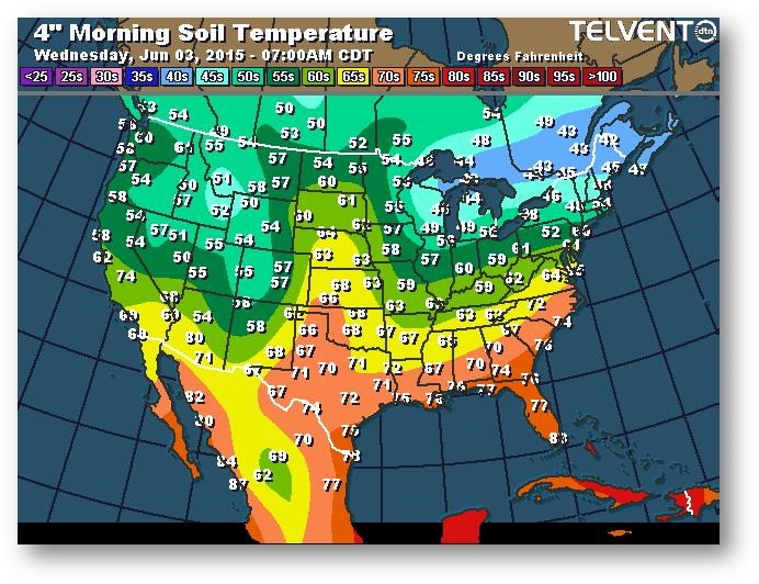 Température du sol en matinée à une profondeur de 4 pouces (degrés Farenheit)