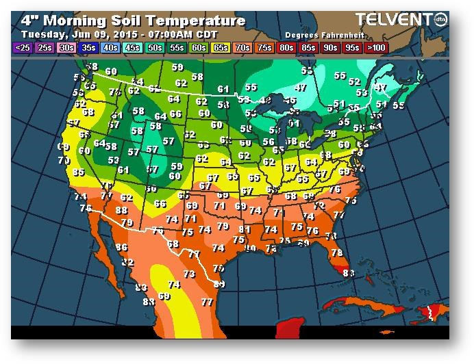 Température du sol en matinée à une profondeur de 4 pouces (degrés Farenheit)