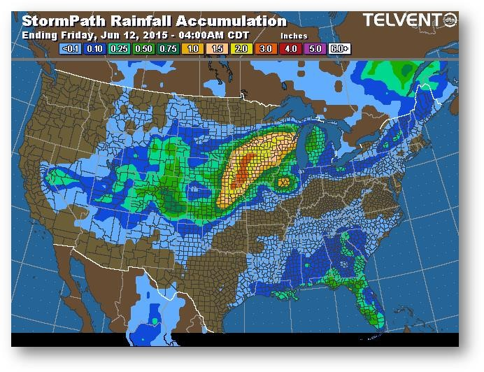 Trajectoire de tempête – Accumulation de précipitations (pouces)