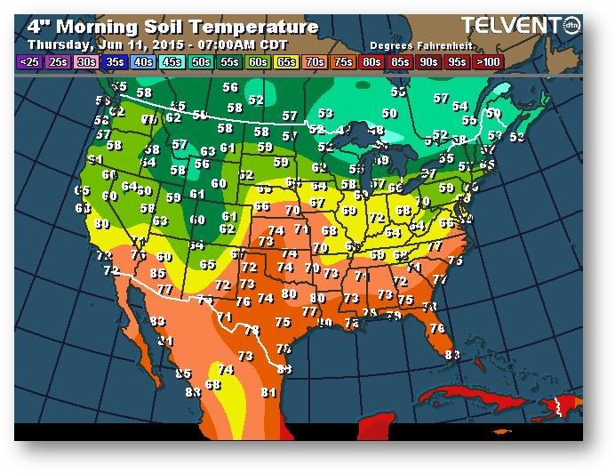 Température du sol en matinée à une profondeur de 4 pouces (degrés Farenheit)