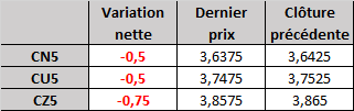 Évolution du prix calculé en fonction du rapport 201 du CME : baisse prévue de