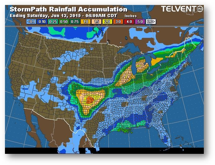 Trajectoire de tempête – Accumulation de précipitations (pouces)