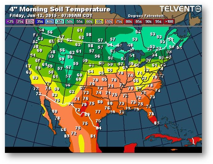 Température du sol en matinée à une profondeur de 4 pouces (degrés Farenheit)